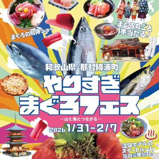 【フィナーレイベント概要】 やりすぎまぐろフェス ~山と海がつながる~ フィナーレイベント やりすぎまぐろフェスのラストを飾るのは、ステージ×グルメ×体験が一体となった“やりすぎ”な集客イベント。まぐろの町・那智勝浦ならではの迫力とおいしさを、... -